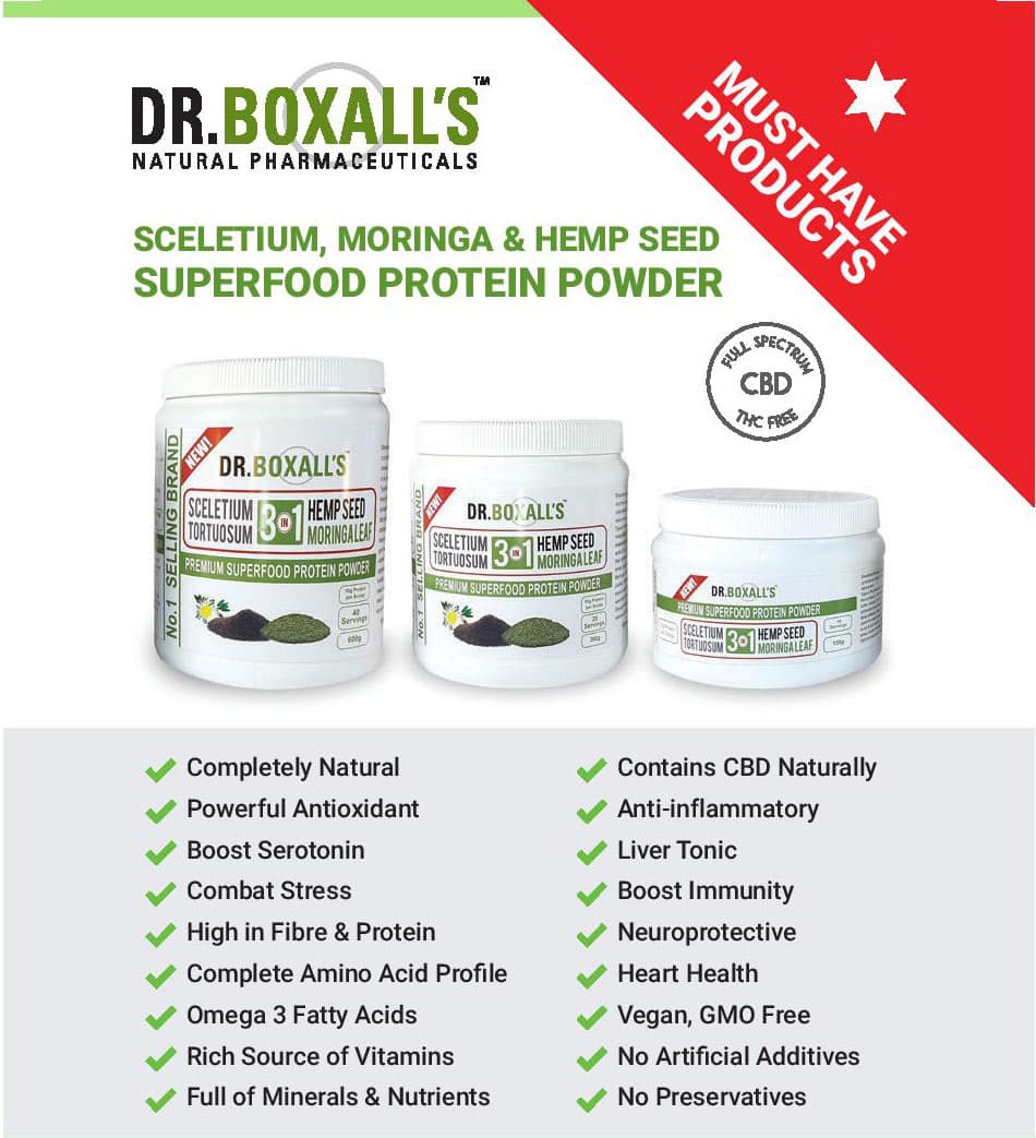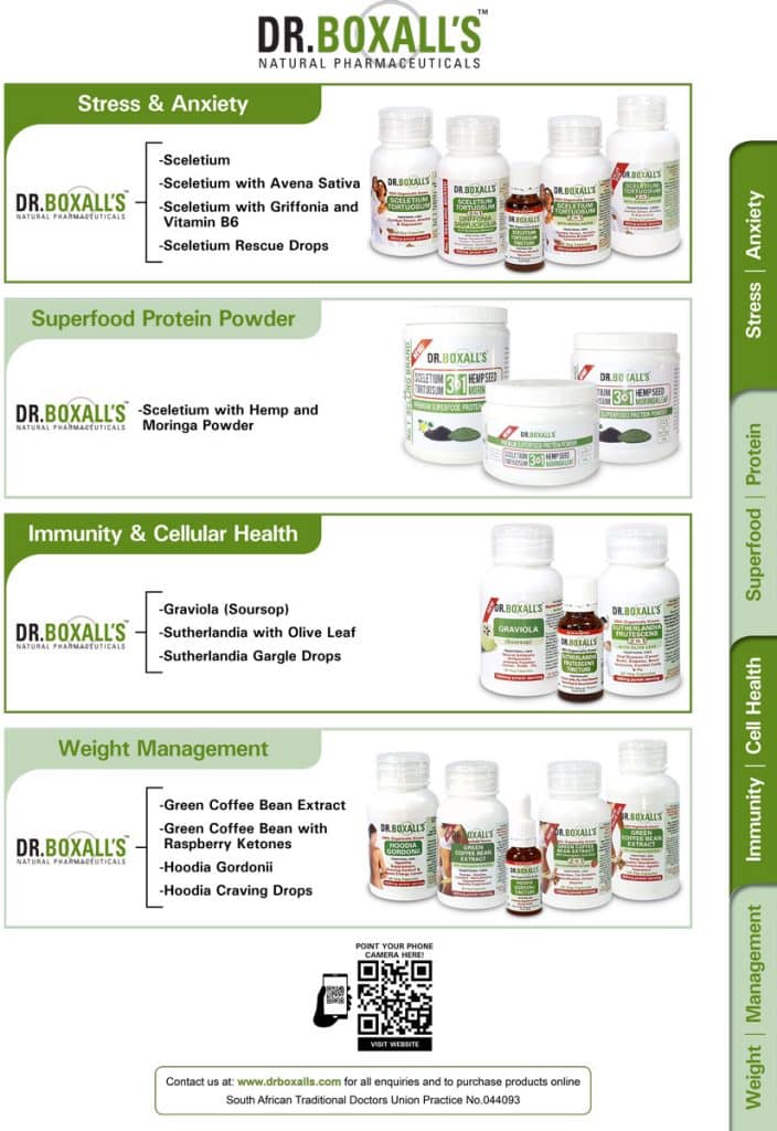 Our products contain no animal products, gluten, yeast, added sugar or sodium. They have no artificial flavourants, colourants or preservatives. They are totally vegan and animal friendly. No artificial fillers or flowing agents are used in the production of their products. All capsules are made from vegetable cellulose and the tinctures from organic ethanol derived from sugar cane. Dr. Boxall truly believes that natural is best. Our promise to manufacture the best quality natural products is a promise we take seriously and no cost or effort is spared in achieving this.